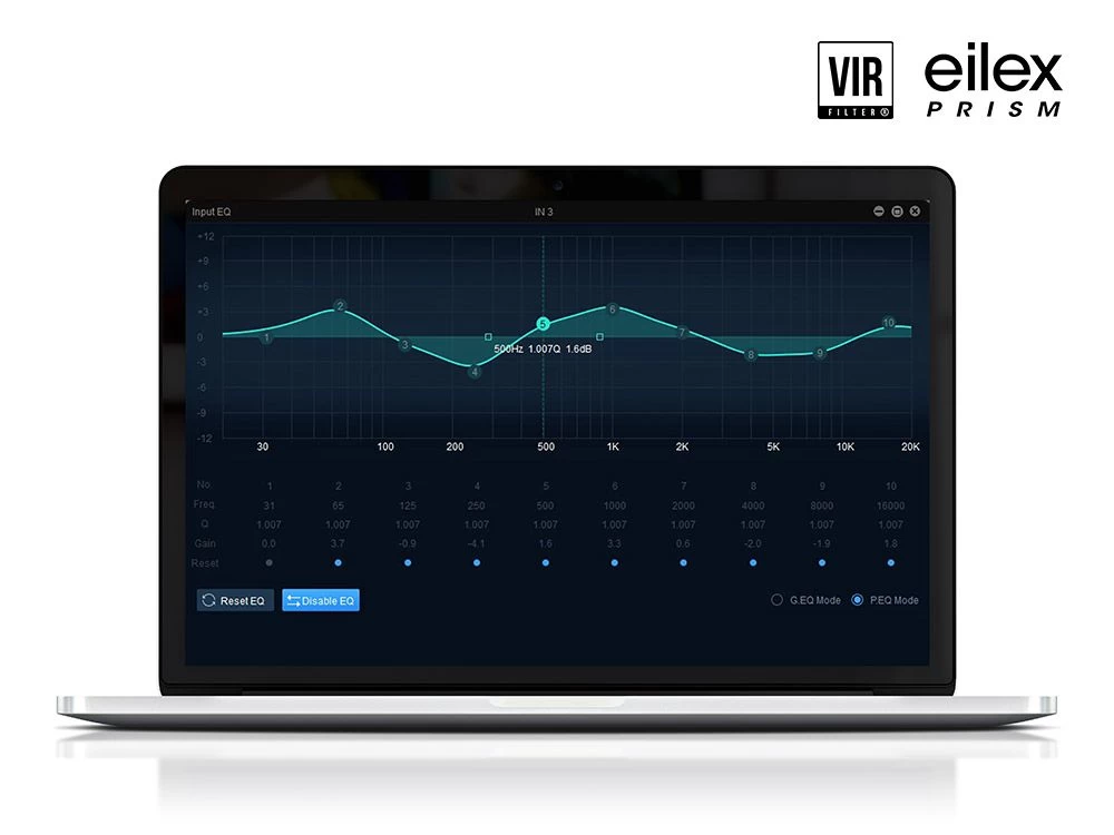 Die integrierte Eilex PRISM™-Technologie misst den Frequenzgang mit der einzigartigen Acoustic Power Volume Density (APVD)-Messung. Die extrem leistungsstarken VIR-DSP-Filter (Variable Impulse Response) korrigieren gleichzeitig Fehler in der Frequenz-, Zeit- und Phasenausrichtung des Lautsprechersystems. Diese Technologie stellt sicher, dass die Klangwiedergabe so nah wie möglich am Original ist, und bietet eine bemerkenswerte Wiedergabequalität. Zu den wichtigsten Vorteilen von Eilex PRISM™ gehören verlässliche Messergebnisse – unabhängig von Bediener oder der Umgebung. Die neu entwickelten VIR-Filter übertreffen dabei herkömmliche DSP-Filter in jeder Hinsicht.