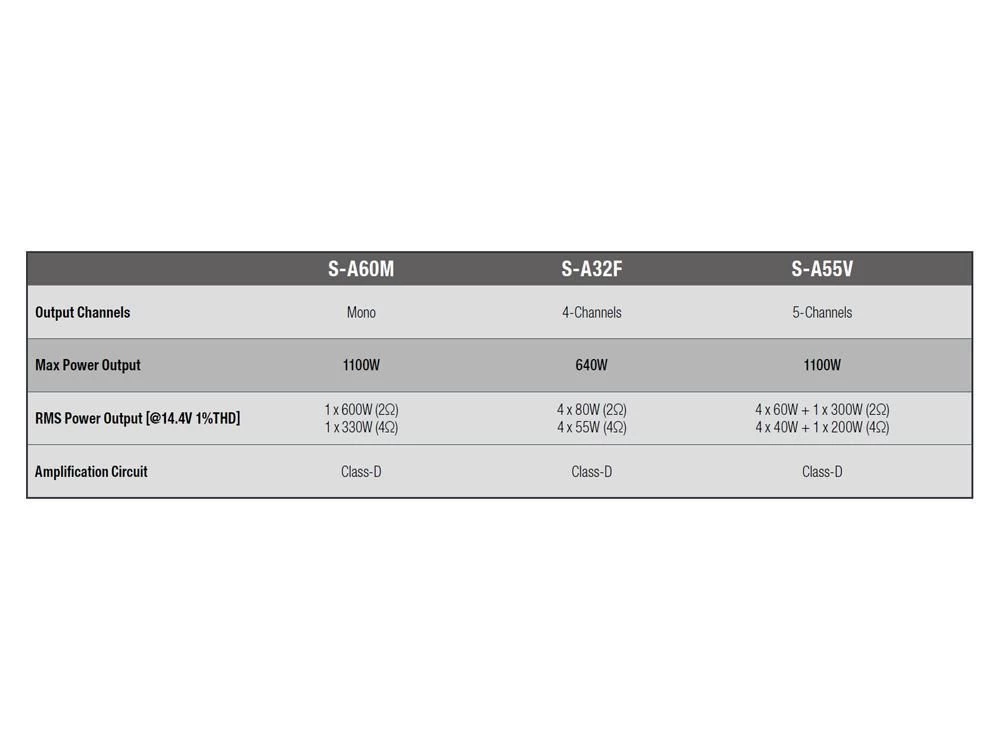 Alpine stellt die brandneuen Verstärker der S-Serie vor, die perfekt auf die Lautsprecher der S-Serie abgestimmt sind. Diese Verstärker bieten ein hervorragendes Watt/Euro-Verhältnis für Class-D Verstärker und zeichnen sich durch eine sehr hohe Hitzebeständigkeit aus, wodurch das Abschaltrisiko durch Überhitzung stark vermindert wird.