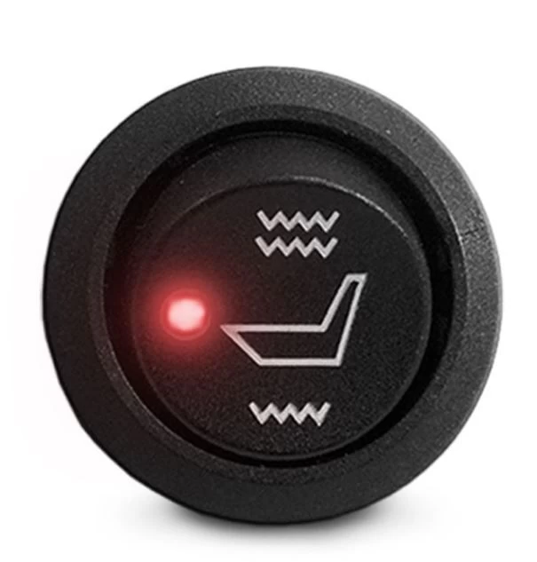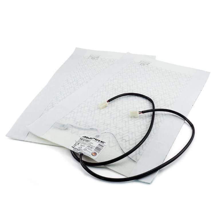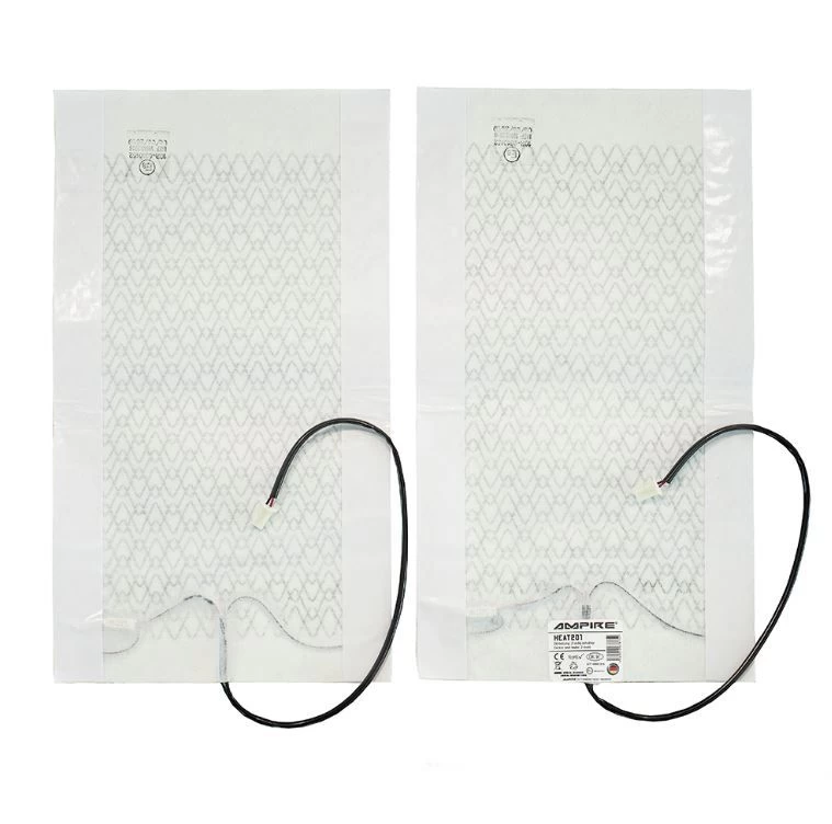 Zuverlässig hochbelastbare Carbon Sitzheizung Typ HEAT201 für einen Fahrzeugsitz mit 2-stufiger Temperatureinstellung mit einem rastenden Schalter. Geeignet für die Installation unter der Lederpolsterung der Rückenlehne und dem Sitzpolster.