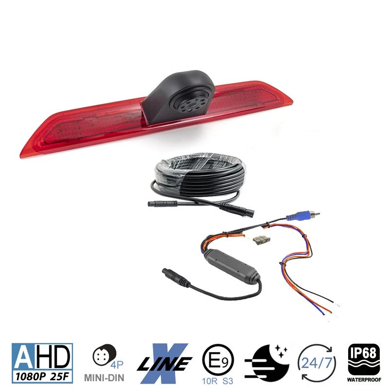 Hochauflösende AHD-Rückfahrkamera KVA-TRANSIT anstelle vom werkseitigen Bremslichtglas montiert wird.