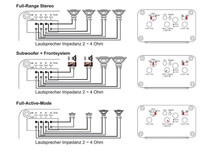 - 4x 60 WRMS an 2 Ohm