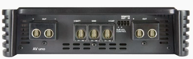 AV uno ist ein Mono-Verstärker, der den Subwoofer antreibt, aber auch für High-Power-Dual-Mono-Systeme geeignet ist.