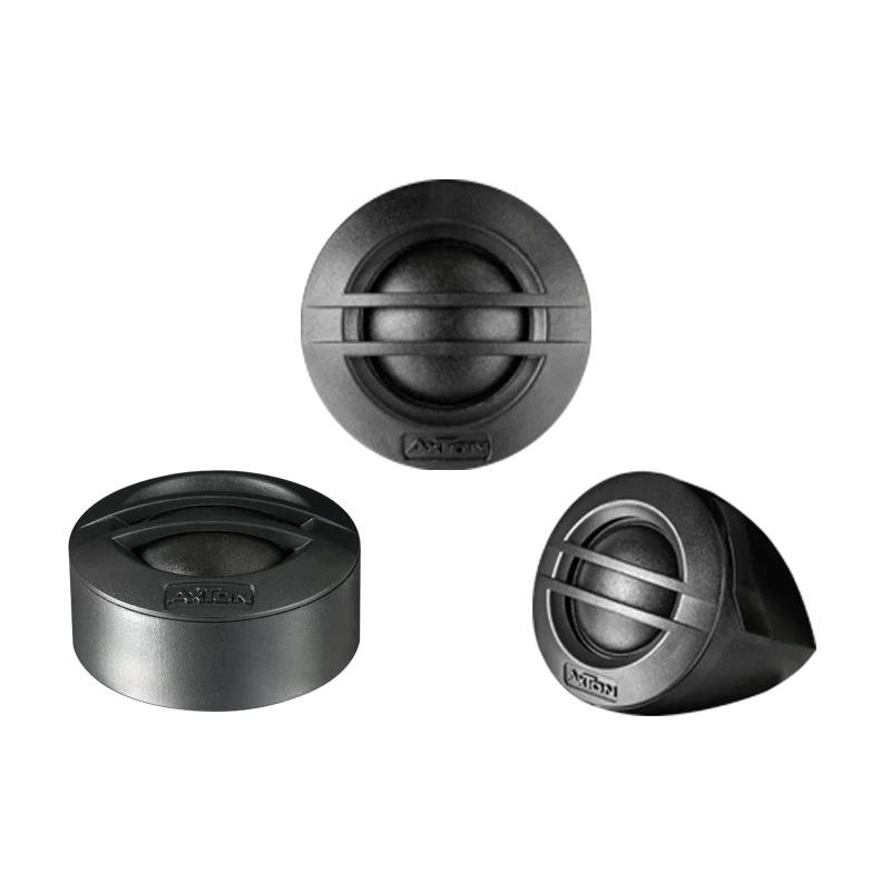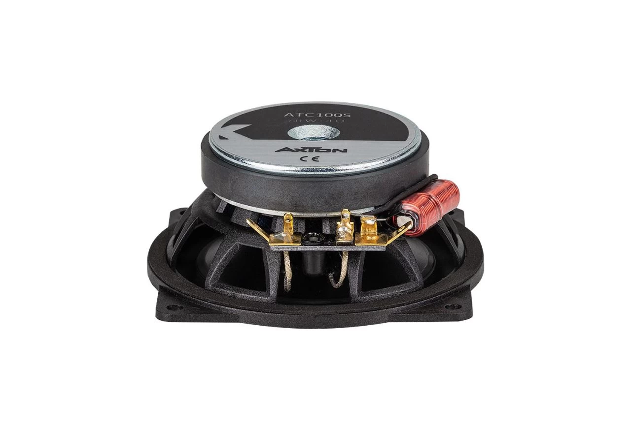 | Das neue AXTON 10 cm Komponenten System ATC100S löst das erfolgreiche, als „Best Product“ ausgezeichnete Vorgängermodell ab – mit einer deutlichen Steigerung in Sachen Wirkungsgrad und Performance. Das ATC100S überzeugt mit impulsivem Sound und enormer Räumlichkeit, aber auch mit seiner Einbaufreundlichkeit: Die innovativen Lautsprecherkörbe aus hochfestem, vibrationsarmem Composite-Material ermöglichen eine Einbautiefe von minimalen 39 mm – ein echter Problemlöser für beengte Montageplätze! Die Tief / Mitteltöner verwenden einen speziell geformten Korb, der die nötige Stabilität bietet und durch die hinteren Öffnungen zu einer optimalen Schwingspulenbelüftung beiträgt. Dazu kommen die bewährte AXTON PP-Membran mit ihrer hervorragenden Dämpfung und ein massiver Ferritmagnet, der den Wirkungsgrad erhöht. Die progressive Aufhängung mit Nomex-Spider und widerstandsfähiger Gummisicke ist eine leichte, langlebige Einfassung, die für hohe Linearität und Genauigkeit sorgt. Dank des 25 mm Gewebehochtöners sind ausgiebige Hörsessions auch bei hohen Abhörlautstärken ein Genuss. Der spezielle Diffusor ermöglicht eine zielgerichtete Abstrahlung und optimiert die Bühnenabbildung. Resonanzarm und detailgetreu in der Wiedergabe, punktet der Tweeter auch mit geringen Einbaumassen. Für eine flexible Montage – auch fernab der Original- Einbauöffnung – liegt dem Set ein Aufbaugehäuse bei, das zwei verschiedene Abstrahlwinkel ermöglicht. Der ATC100S kann problemlos die ab Werk montierten Komponenten ersetzen: Die Tieftöner können 1:1 getauscht werden, die Montage einer gemeinsamen Frequenzweiche für Mid / Woofer und Tweeter entfällt. Eine Frequenzweiche befindet sich direkt am Tieftöner, die im Lieferumfang enthaltene kompakte 6 dB/Okt. Hochtönerweiche (mit 0 / -3 dB Pegelabsenkung) kann bequem hinter der Verkleidung platziert werden. HAUPTMERKMALE