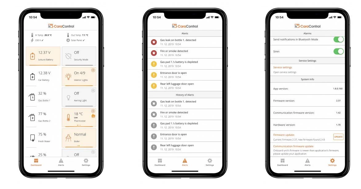 Mit der GCC-P001 Basiseinheit von CaraControl verwandelt man Reisemobile in moderne mobile Smart Homes. Denn CaraControl ermöglicht die Vernetzung, Überwachung, Bedienung und Fernsteuerung von vielen Funktionen im Reisemobil: zum Beispiel vom Status der Heizungs-, Klima- und Lichtanlage, Stromversorgung, Batterieladung, Gasflaschenfüllung und des Frisch- und Abwassers. Eine optionale Anbindung von CaraControl an kompatible ZENEC Infotainer ist möglich, zum Beispiel an den Z-E3766 oder Z-N966.
