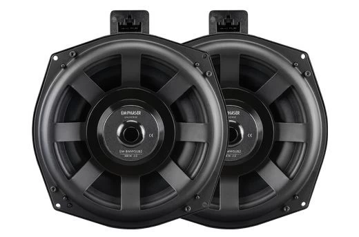 Der EM-BMWSUB2 ist kompatibel mit dem BMW E6x, E7x, E8x, E9x, F0x, F2x, F3x, F4x, F5x, F8x, G11, G12, G30, G31, G38, I8 und dem Mini F5x, F60, R60, R61. Lieferumfang: 1 Paar, 150 W RMS, 300 W max. gesamt, Frequenzgang: 35 Hz – 250 Hz, Impedanz: 2 Ohm, Einbaudurchmesser: 192 mm, Einbautiefe: 31 mm.