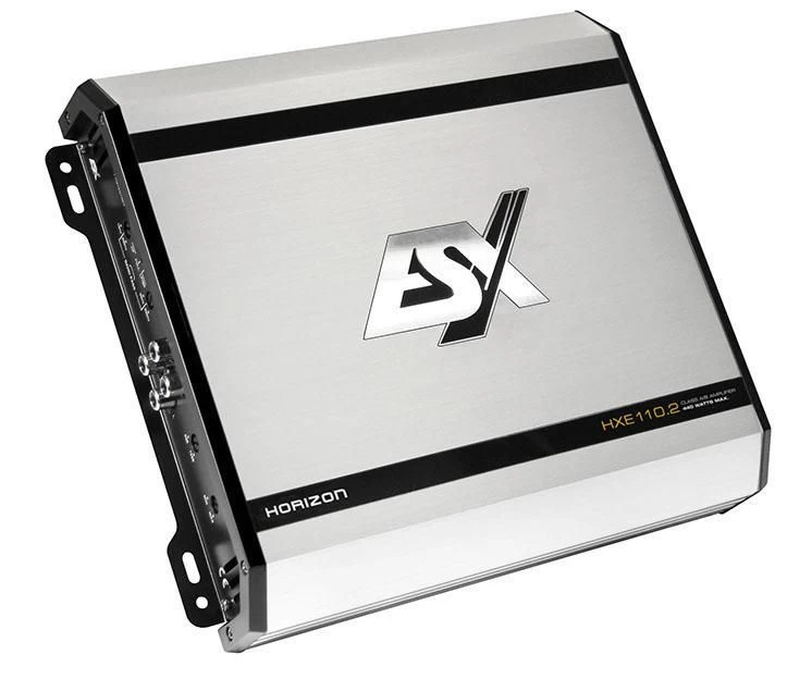 Die Horizon HXE Verstärker sind die Einstiegsklasse von ESX und überzeugen in jeglicher Hinsicht. Diese bietet eine ausgereifte Technik, solide Komponenten und eine hervorragende Verarbeitung, kombiniert mit einer überzeugender Ausgangsleistung und vielseitiger Ausstattung. Das formschöne Design mit dem schweren Kühlkörper aus Aluminiumstrangguss vermittelt eine edle und hochwertige Eleganz, die in dieser Preisklasse eher unüblich ist. Die HORIZON Amps bieten viel Verstärkerpower für ein kleines Budget. Highlight der Serie ist der kräftige Digital-Monoblock HXE2000.1D mit bis zu 2000 Watt max. Power.