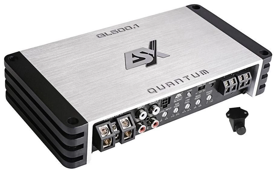 Die im ESX Portfolio ebenfalls brandneuen QUANTUM QL Verstärker sind technisch gesehen die kleinen Geschwister der QE Modelle. Ideal sind sie dort einsetzbar, wo der Einbauplatz sehr knapp bemessen ist. Sie sind ebenfalls emissionsfrei und haben wie die großen QE-Modelle feinste Class-D Technik an Bord, die hinsichtlich Leistung, Soundqualität und Einstellmöglichkeiten keine Wünsche offen lässt. Die Optik und Abmessungen teilen sich die QL Modelle mit den XE-DSP Amps und dem X-DSP Prozessor, so dass durch die Kombination der Geräte hochwertige DSP-Systeme mit viel Power aufgebaut werden können. Die platzsparend einsetzbare Fernbedienung ist ebenfalls bei den QL-Modellen im Lieferumfang enthalten.