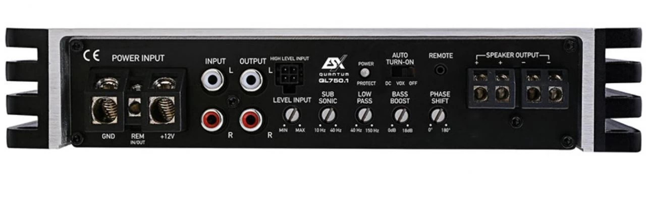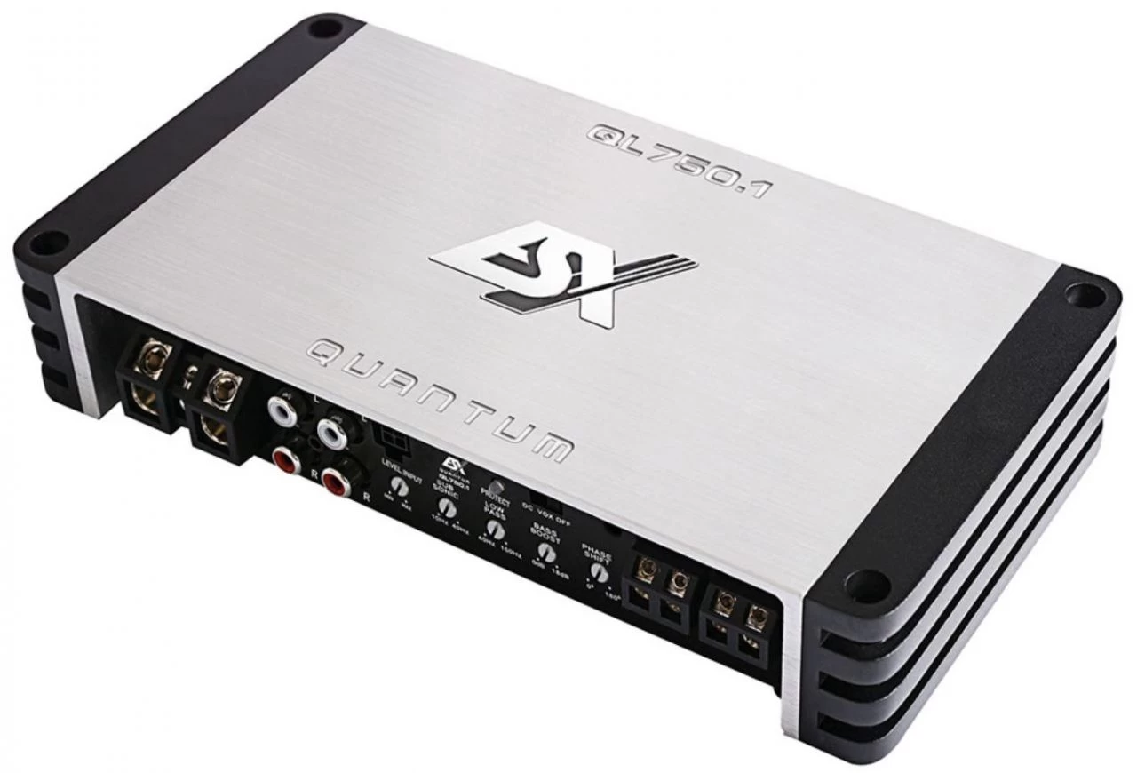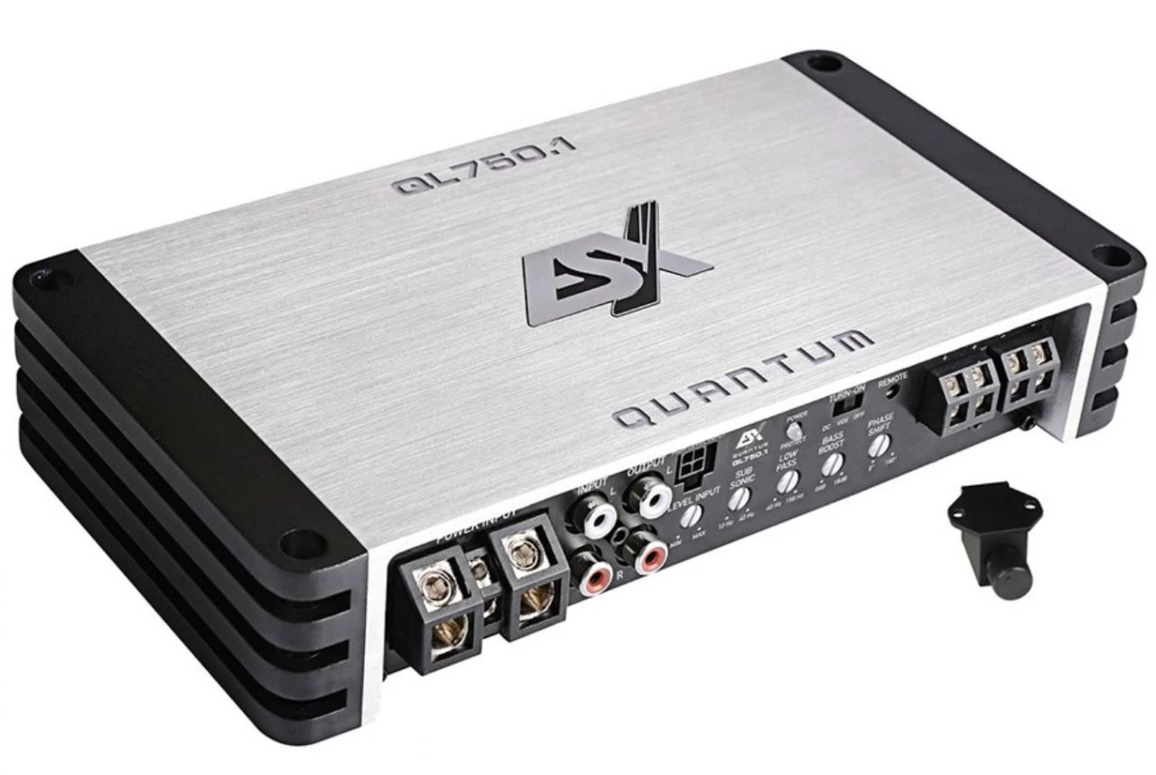Die im ESX Portfolio ebenfalls brandneuen QUANTUM QL Verstärker sind technisch gesehen die kleinen Geschwister der QE Modelle. Ideal sind sie dort einsetzbar, wo der Einbauplatz sehr knapp bemessen ist. Sie sind ebenfalls emissionsfrei und haben wie die großen QE-Modelle feinste Class-D Technik an Bord, die hinsichtlich Leistung, Soundqualität und Einstellmöglichkeiten keine Wünsche offen lässt. Die Optik und Abmessungen teilen sich die QL Modelle mit den XE-DSP Amps und dem X-DSP Prozessor, so dass durch die Kombination der Geräte hochwertige DSP-Systeme mit viel Power aufgebaut werden können. Die platzsparend einsetzbare Fernbedienung ist ebenfalls bei den QL-Modellen im Lieferumfang enthalten.