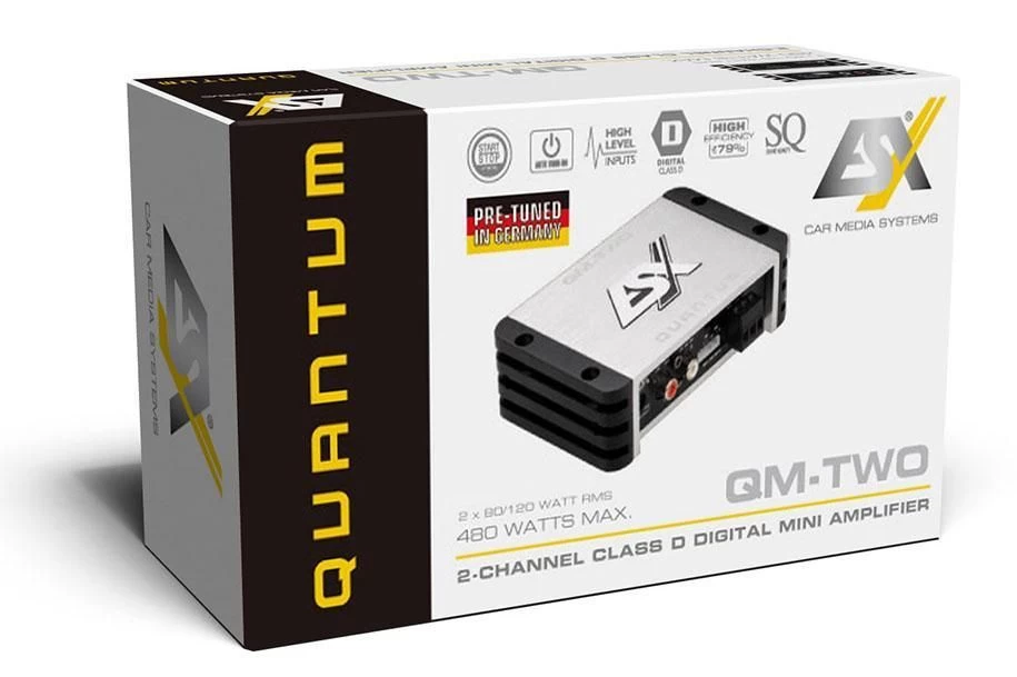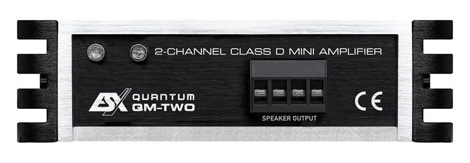 Der Mini-Verstärker QM-TWO aus der ESX QUANTUM Serie ist die Lösung, wenn es im Fahrzeug sehr eng zugeht. Das kleine Wunderwerk mit Abmessungen von gerade einmal 75 x 33 x 120 mm dürfte in jeder Nische im Innenraum einen Platz finden. Mit einer erstaunlichen Ausgangsleistung von bis zu 240 Watt RMS ist der Miniamp sogar in der Lage, einen mittelgroßen Subwoofer zu befeuern. Dank der Hochpegel-Eingänge und der automatischen Einschaltfunktion ist der QM-TWO optimal auch in Werksanlagen zu integrieren.