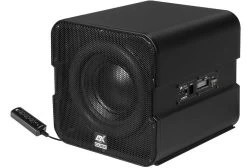 Die VISION Serie bekommt mit der völlig neu entwickelten Aktiv-Subwoofer-Box V1600A hochkarätigen Zuwachs. Bei der Entwicklung dieses Soundsystems wurde besonderes Augenmerk auf satte und präzise Bässe bei geringen Gehäuseabmessungen gelegt, was mit dem optimal abgestimmten 20 cm (8“) Aktiv-Tieftöner und dem gleichgroßen, gegenüberliegenden Passivwoofer bestens umgesetzt wurde. Dieses Konzept sorgt gegenüber herkömmlichen Bassreflex-Systemen für mehr Tiefbass mit weniger Störgeräuschen bei relativ kleinem Volumen. Das kompakte aber äußerst solide Gehäuse des ESX CUBE ist aus 5 mm starkem Aluminium-Strangguss gefertigt. Für den Schutz der Woofer sorgen die beiden stabilen Schutzgitter. Dank des ausgeklügelten Montagesystems ist der „Wunderwürfel“ sehr leicht zu montieren. Dabei wird eine stabile Bodenplatte mit Führungsleisten im Kofferraum fixiert und das Gehäuse einfach draufgeschoben. Vorteil ist hierbei, dass das Soundsystem jederzeit aus dem Fahrzeug entfernt werden kann, wenn der Platz kurzfristig anderweitig benötigt wird. Der integrierte Class A/B Verstärker ist mit Hochpegel-Eingängen und automatischer Einschaltfunktion ausgestattet und liefert bis zu 300 Watt Musikleistung. Mit der beiliegenden Kabel-Fernbedienung kann der Basspegel, der Tiefpassfilter sowie die Phasenlage geregelt werden.