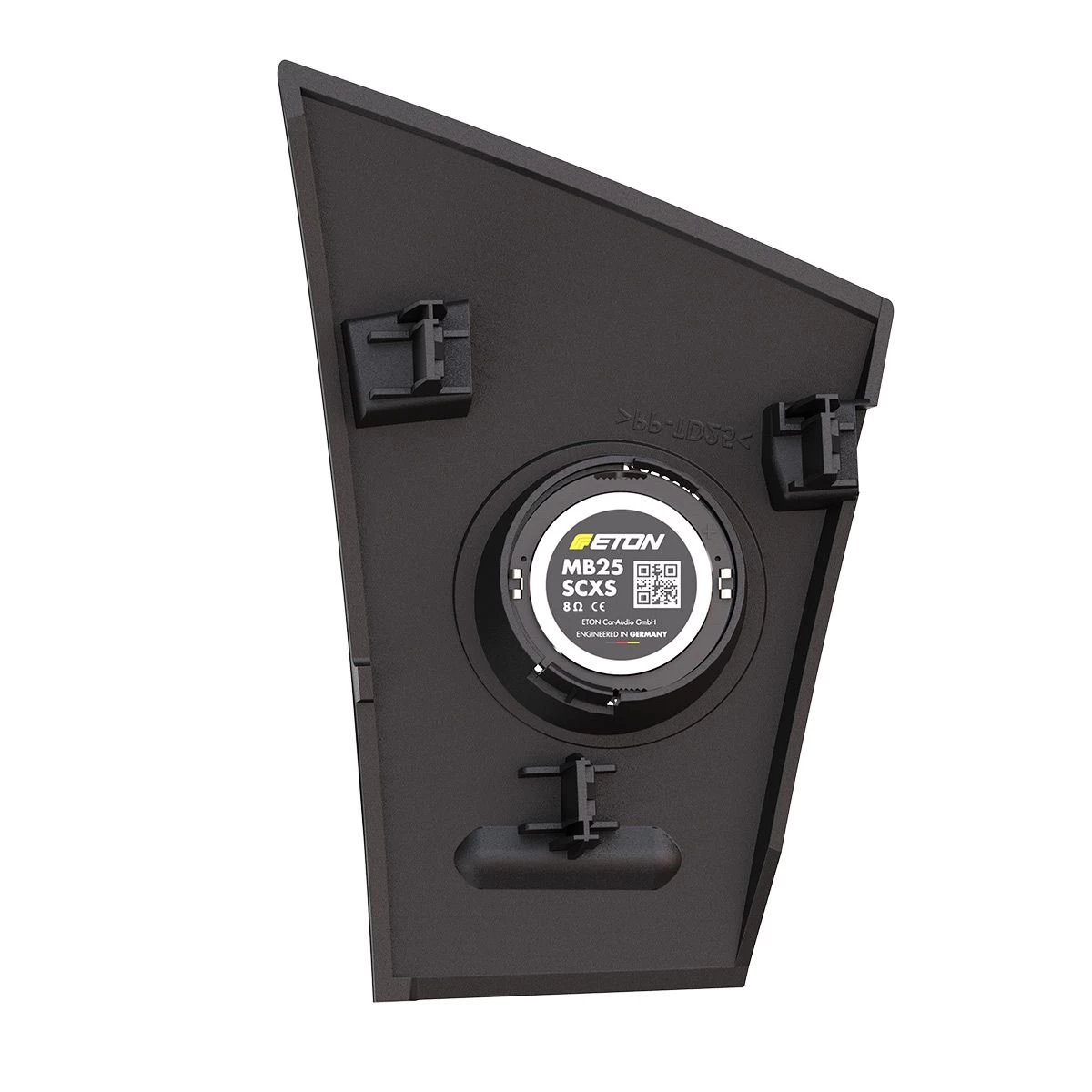 Das Set besteht aus einem 16,5 cm Tiefmitteltöner mit beschichteter Papiermembran, starkem Ferritmagnet und passgenauen Anschlussterminals- Dazu kommen ein 80 mm Centerspeaker sowie ein 25 mm Gewebehochöner mit speziellen Hochtonhaltern und Kabelfrequenzweichen. Der ETON UG MB SF2.1 ist Engineered in Germany.