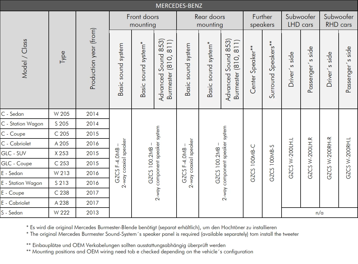 Es wird die original Mercedes Burmester-Blende benötigt (separat erhältlich), um den Hochtöner zu installieren