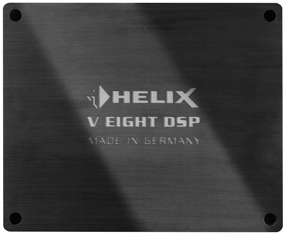Die neue V EIGHT DSP MK2 präsentiert sich trotz ihres weiter gesteigerten Funktionsumfangs und bis zu 160 Watt RMS Ausgangsleistung pro Kanal (an 2 Ohm) unverändert kompakt im HELIX-typischen, klaren Design, welches ideale Voraussetzungen für eine schnelle und einfache Integration erfüllt.