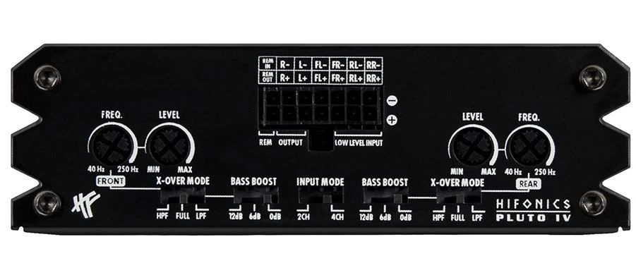 Dass HiFonics nicht nur große Verstärkerboliden, sondern auch kleine Mini-Kraftwerke bauen kann, ist nicht erst seit den Triton oder Mercury Modellen bekannt. Hifonics führt die bewährte Tradition nun mit der brandneuen PLUTO Serie fort. Erfreulicherweise sind die Verstärker nochmals eine ganze Ecke kleiner ausgefallen. Obendrein sind sie blitzsauber aufgebaut und sind vollgepackt mit modernen Features. Ermöglicht wurde die Schrumpfkur dank moderner Class D Technik, die sich insbesondere durch den außergewöhnlich hohen Wirkungsgrad von bis zu 90% gut zeigt. Durch die Verbesserung der Leistungsdichte infolge der Fortschritte bei Halbleitern nimmt interessanterweise auch die Audio- Performance zu. So sind die neuen PLUTO Verstärker nicht nur besonders klein, sie klingen auch noch überragend. Ebenso wichtig wie Leistung oder kompakte Einbaugröße ist immer mehr auch die Frage, ob sich die neuen Verstärker in moderne Fahrzeuge integrieren lassen, speziell wenn „Fehler-Diagnosesysteme“ an Bord sind. Solche Systeme diagnostizieren, wenn sich etwas an der ursprünglichen Werkskonfiguration ändert. Aus diesem Grund wurde in die Hochpegeleingänge der PLUTO Serie das fortschrittliche EPS und die automatische Einschaltfunktion integriert, um die Funktion gerade in modernen Fahrzeugen sicherzustellen. Zusätzliche Adapter können somit entfallen. Hifonics legt traditionell nicht nur großen Wert auf innere Werte, auch die Verarbeitung muss stimmen. So präsentiert sich auch die PLUTO Serie sehr hochwertig. Mit den aufwendig gefrästen Modellbezeichnungen und den bündig eingelassenen Logos in Diamantschliff geben sich die kleinen Plutos als waschechte HiFonics Verstärker zu erkennen.