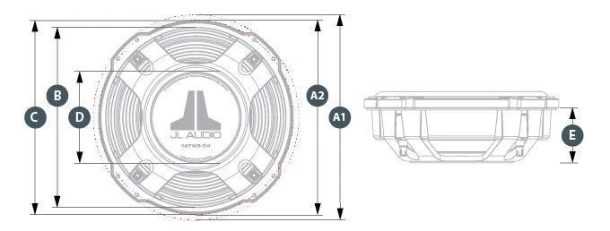- Gesamtdurchmesser (A) A1: 335 mm (13,2 Zoll) A2: 318 mm (12,5 Zoll)