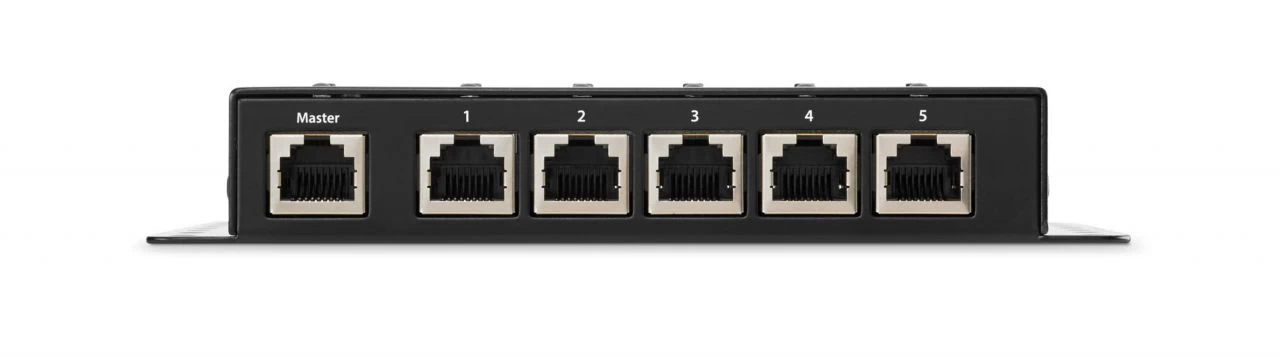 Für Datenvernetzungszwecke ist der VXi-HUB mit einem Master- und fünf Slave-JLid-COMM-Verbindungen ausgestattet, sodass bis zu sechs VXi-Verstärker mit Standard-CAT5e-Kabeln (ein Master-Verstärker und fünf Slave-Verstärker) vernetzt werden können. Bei komplexeren Systemen können zwei VXI-HUBs in Reihe geschaltet werden, um ein Netzwerk von bis zu zehn VXi-Verstärkern (einem Hauptverstärker und neun Slave-Verstärkern) zu erstellen.