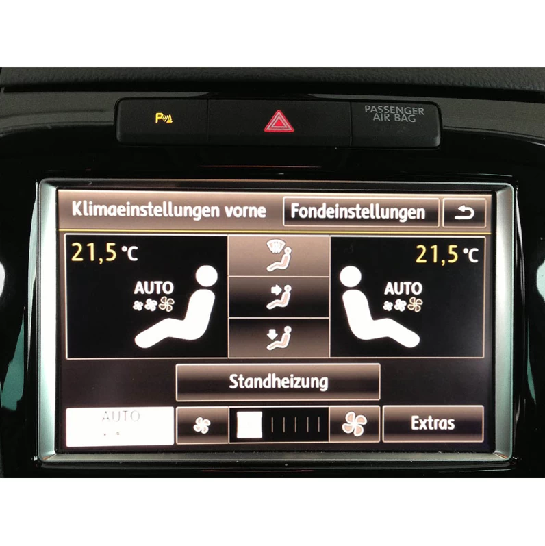 Die Standheizung erwärmt den Innenraum und befreit die Scheiben von Eis ohne Inbetriebnahme des Motors. Komfortable Wärme- und Frischluftregulierung über Zeitschaltuhr (im RCD550 oder RNS850) oder Fernbedienung.