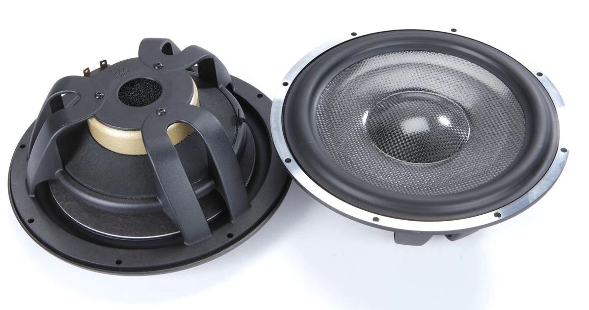 - 9-Zoll-Tieftöner mit 3-lagiger Kohlefaser/Rohacell-Membran und Butylkautschuk-Sicke