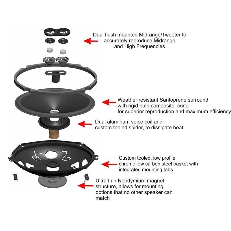 Bei diesem einzigartigen DVC-Koaxiallautsprecher hat der Basslautsprecher zwei Schwingspulen und kann dadurch die Musik auch in Stereo wiedergeben. Dadurch erhalten Sie ohne optischen Veränderungen am Innenraum, nicht nur ein deutlich verbessertes Bassfundament, sondern durch die beiden Stereo-Hochtöner viel mehr Räumlichkeit und Tiefe. Retrosound gelang es nur durch den Einsatz von Stahlkörben mit teuren Neodymmagneten die Lautsprecher so unglaublich flach in der Einbautiefe herzustellen. In vielen älteren Fahrzeugen können aktuelle Autolautsprecher, wegen der großen Magneten, überhaupt nicht installiert werden.
