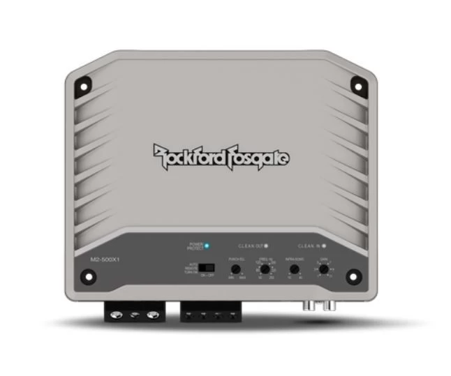 Der Element Ready™-Verstärker M2-500X1 ist ein 500-Watt-Class-D-Modell, das für den Betrieb an 4Ω oder 2Ω Mono ausgelegt ist und den Elementen trotzt. Dieser Verstärker ist aufgrund seiner Class-D-Technologie, die die Anforderungen an das elektrische System reduziert, äußerst effizient. Der Verstärker verfügt außerdem über eine C.L.E.A.N.-Schaltung zur Anpassung der Verstärkungseinstellungen, eine P.O.W.E.R.-Versorgung, die mit zunehmender Spannung mehr Leistung erzeugt, und einen integrierten Punch-EQ, der akustische Schwächen korrigiert und gleichzeitig eine bis zu 3-fache Bassverstärkung liefert. Bei Subwoofern können Sie mit einem variablen Infraschallfilter und einer Pegelfernbedienung den Bass auf den gewünschten Pegel für die Musik abstimmen.